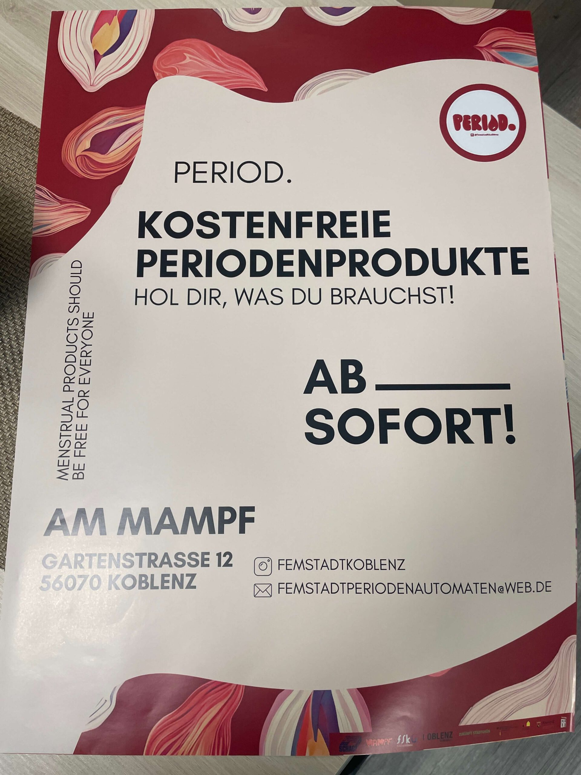 Es ist bekannt, dass viele Frauen mit finanziellen oder logistischen Herausforderungen konfrontiert sind, wenn es um die Beschaffung von Periodenprodukten geht. Besonders betroffen sind Frauen ohne festen Wohnsitz oder in prekären Wohnverhältnissen. Das Projekt zielt darauf ab, durch die kostenfreie Bereitstellung von Periodenprodukten in öffentlichen Einrichtungen und Geschäften sowie durch die Umfunktionierung alter Kaugummiautomaten zu Periodenautomaten, die an strategisch wichtigen Orten aufgestellt werden, diese Hürden zu überwinden und die Lebensqualität vieler Frauen in Koblenz-Lützel zu verbessern.